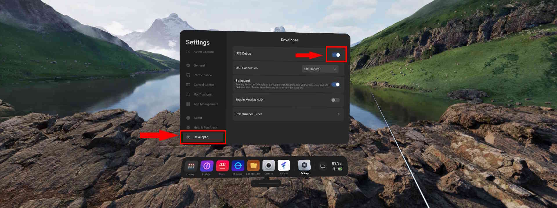 To allow sideloading apps on our Pico using the ADB tool, we need to enable developer settings on the Pico and enable USB debugging.